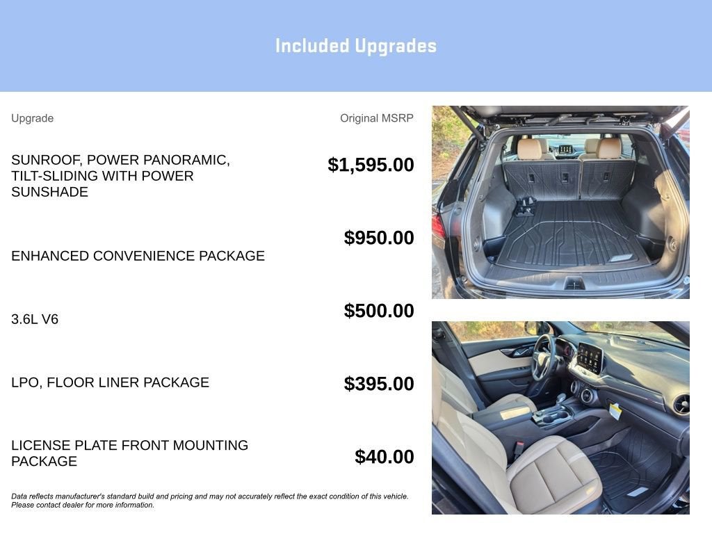 The Dealership That Puts You The Customer First!!! Enhanced Convenience Package (Heated Rear Outboard Seating Positions), Preferred Equipment Group 0HD, AWD, 170 Amp Alternator, 4-Wheel Disc Brakes, 6-Way Power Front Passenger Seat Adjuster, 8 Speakers, 8-Way Power Driver Seat Adjuster, ABS brakes, Air Conditioning, Alloy wheels, AM/FM radio: SiriusXM with 360L, Apple CarPlay/Android Auto, Auto High-beam Headlights, Auto-dimming door mirrors, Auto-dimming Rear-View mirror, Automatic temperature control, Bose Premium 8-Speaker Audio System Feature, Brake assist, Bumpers: body-color, Child-Seat-Sensing Airbag, Compass, Delay-off headlights, Driver door bin, Driver vanity mirror, Dual front impact airbags, Dual front side impact airbags, Electronic Stability Control, Emergency communication system: OnStar and Chevrolet connected services capable, Four wheel independent suspension, Front anti-roll bar, Front Bucket Seats, Front Center Armrest, Front dual zone A/C, Front reading lights, Fully automatic headlights, Garage door transmitter, Heated door mirrors, Heated front seats, Heated steering wheel, Illuminated entry, Knee airbag, Leather Shift Knob, Leather steering wheel, Low tire pressure warning, Navigation System, Occupant sensing airbag, Outside temperature display, Overhead airbag, Overhead console, Panic alarm, Passenger door bin, Passenger vanity mirror, Perforated Leather-Appointed Seat Trim, Power door mirrors, Power Driver Lumbar Control, Power driver seat, Power Liftgate, Power Panoramic Tilt-Sliding Sunroof, Power passenger seat, Power steering, Power windows, Premium audio system: Chevrolet Infotainment 3 Premium, Radio data system, Radio: Chevrolet Infotainment 3 Premium System, Rear anti-roll bar, Rear reading lights, Rear seat center armrest, Rear window defroster, Rear window wiper, Remote keyless entry, Security system, Speed control, Speed-sensing steering, Split folding rear seat, Spoiler, Steering wheel mounted audio controls, Stop-Start Engine Control System, Tachometer, Telescoping steering wheel, Tilt steering wheel, Traction control, Trip computer, Turn signal indicator mirrors, Variably intermittent wipers, Voltmeter, and Wheels: 20 Medium Android Machined-Face Aluminum. Price does not include taxes, tags and dealer fees. Price includes: $1000 - Chevrolet Consumer Cash Program. Exp. 02/02/2026