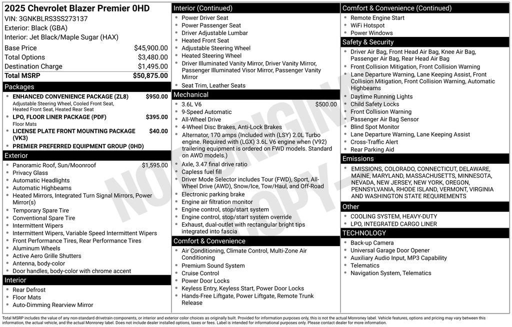 Black 2025 Chevrolet Blazer Premier AWD 9-Speed Automatic with Overdrive 3.6L V6 SIDI